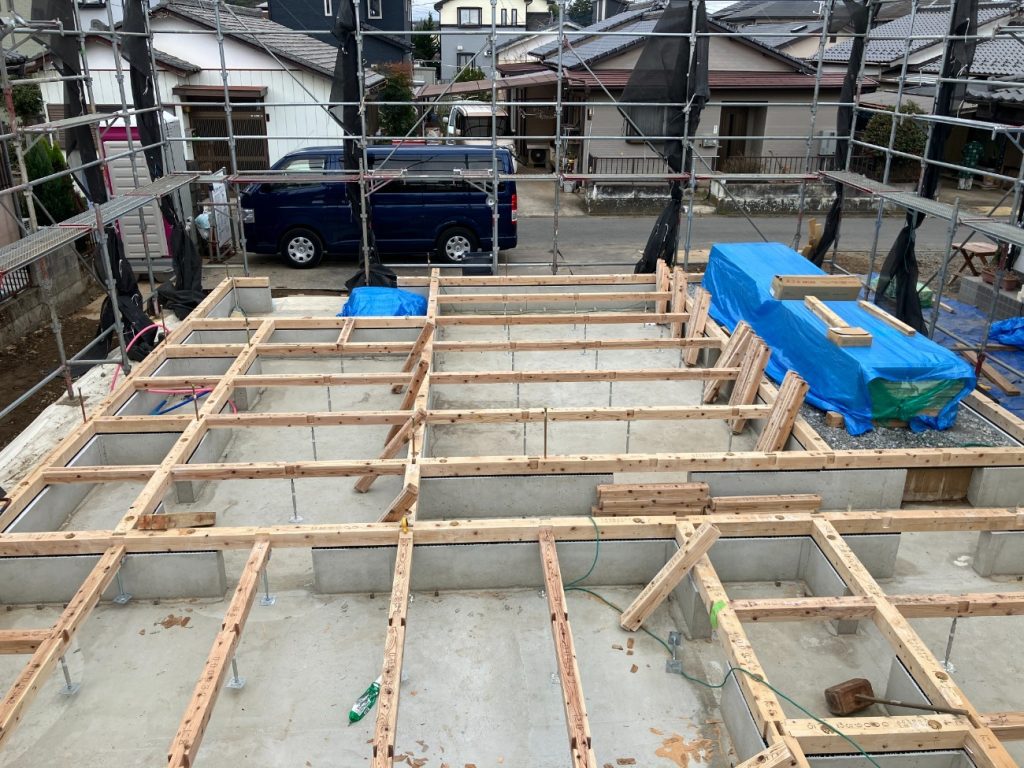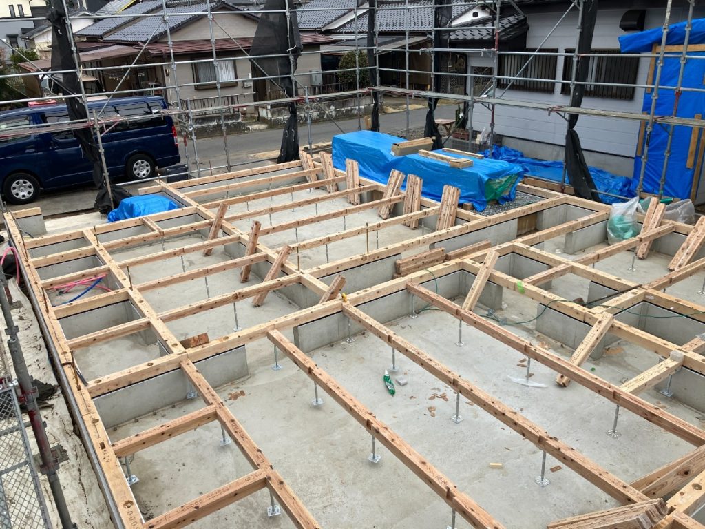 - 土台敷き:大工さんが丁寧に土台を組み、いよいよ家の形が見えてくる段階へ